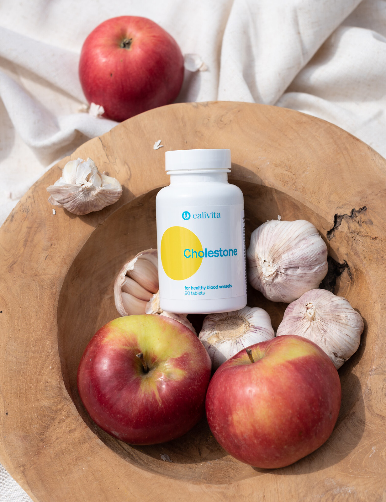 Fast jeder Zweite hat einen erhöhten Cholesterinspiegel im Blut. Dies ist vor allem die Folge einer ungesunden Lebensführung und falschen Ernährung. Cholestone enthält Knoblauch, der sich positiv auf den Blutfettspiegel auswirkt – Cholesterin, Triglyceride, unterstützt die Funktion des Herzens und des Immunsystems. Leinöl hat eine positive Wirkung auf das Herz. Chrom wirkt sich positiv auf den Kohlenhydrat-, Protein- und Fettstoffwechsel aus und die Vitamine C und E unterstützen den Schutz der Zellen vor oxidativem Stress. Das Produkt enthält außerdem Apfelpektin und Lecithin.